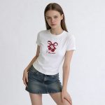 เสื้อทีเชิ้ตสีขาวคอกลม ดีไซน์ลาย Graphic Tees เนื้อผ้ายืดหยุ่น สวมใส่สบาย เคลื่อนไหวคล่องตัว ระบายอากาศได้ดี เหมาะสำหรับทุกฤดูกาล แมตช์ง่ายกับกางเกงยีนส์หรือกระโปรง เติมลุคให้ดูโดดเด่นในทุกวัน